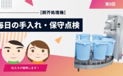 前回は厨芥処理機の排水水質について説明しました。今回は毎日の手入れ、保守点検について紹介していきますね!☞▶【第8回】厨芥処理機 排水水質をチェックするお願いします!毎日の手入れ:粉砕機内蔵シンクまずは、粉砕機内蔵シンクの手入れについて説明...