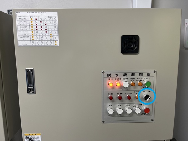 脱水機制御盤「手動⇔自動」切替スイッチ