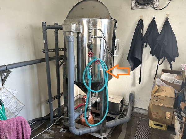 あわせて、調整タンク付属のスプレーガンでタンク内部を洗浄する。